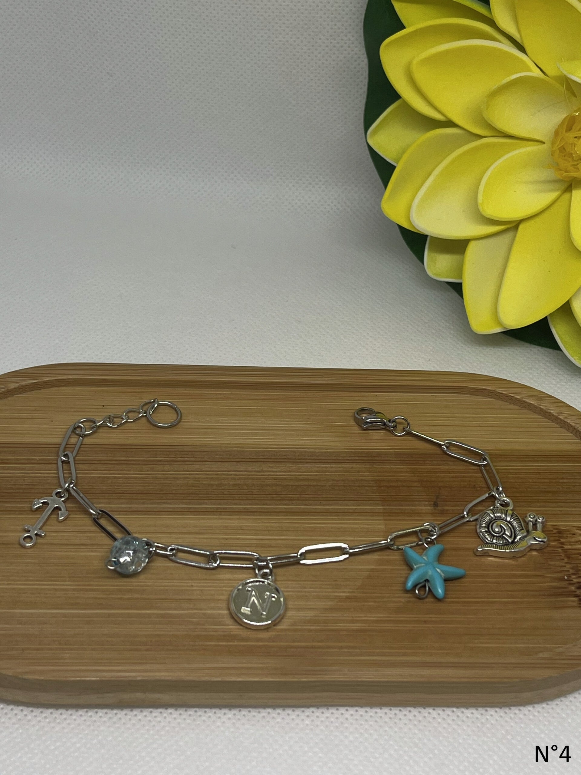 Bracelet femme en chaine inoxidable avec pendentifs. Demandez la lettre de votre prénom.